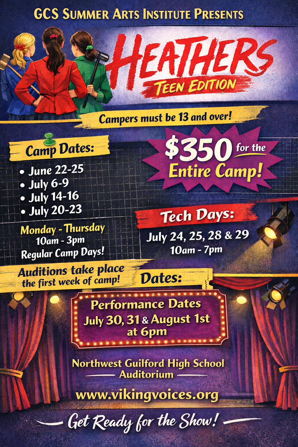 Thank you for supporting the Arts in our community. Please consider donating to the Northwest Guilford High School Choral Boosters by Check or Cash. We will also be running a Vertical Raise fundraiser in October in which you can donate for a specific student, as a buisness sponsor, or to the organization as a whole.